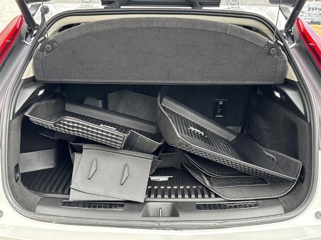 - Opens or closes when the system senses the key fob and the driver extends their foot under the left-hand side of the rear bumper over an image of the Cadillac Crest projected under the vehicle